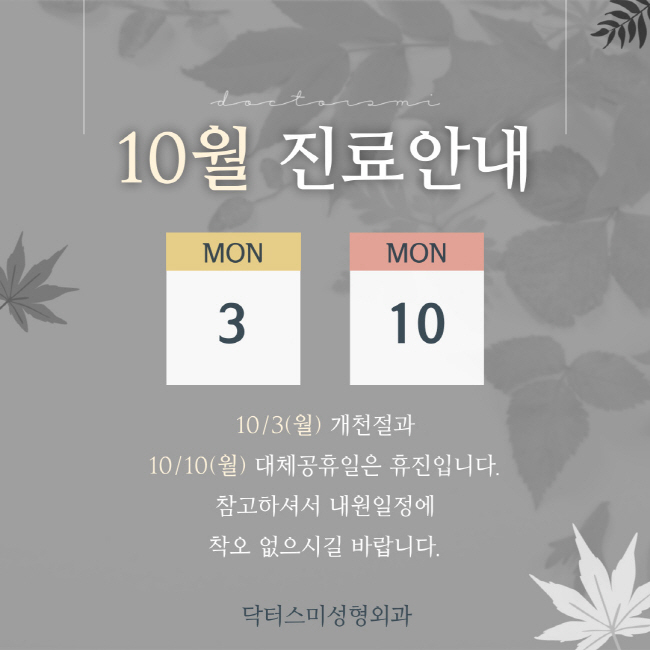 ´ÚÅͽº¹Ì¼Çü¿Ü°ú 10¿ù Áø·áÀÏÁ¤ ¾È³»µå¸³´Ï´Ù.